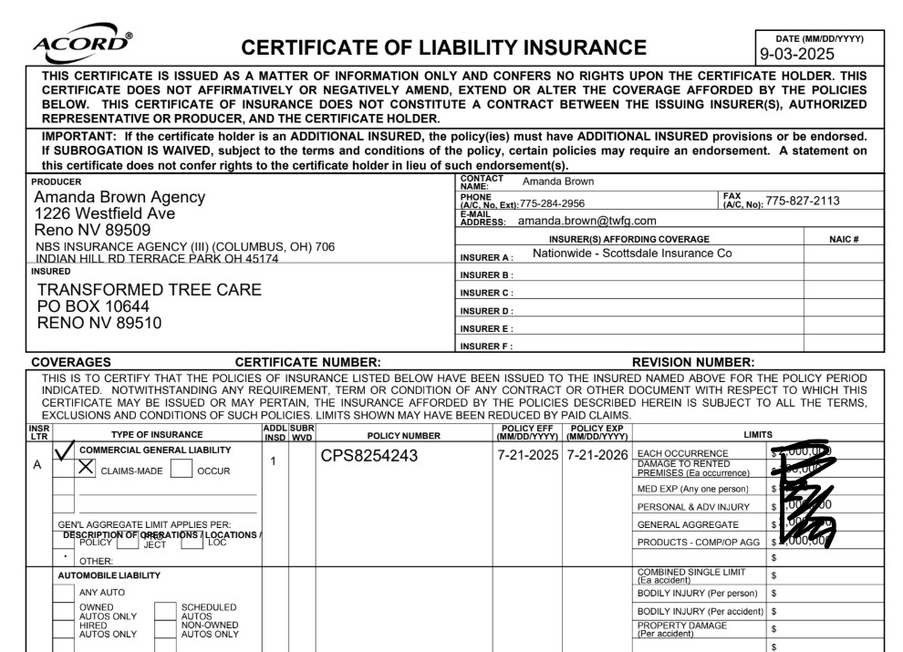 To ensure the effectiveness of this policy, Transformed Tree Care will periodically review and update our practices to stay aligned with new environmental standards and innovations. We are proud to be part of a community that values sustainability, and we remain committed to preserving Nevada’s natural beauty for years to come.